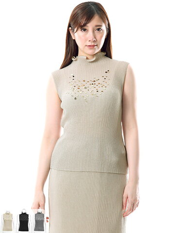 S.T.CLOSET イチョウ柄刺しゅうカオリプルオーバー■E31001-64-MG【レディース トップス 長袖 ブラウス シャツ エスティークローゼット 】■2002062【冬服】